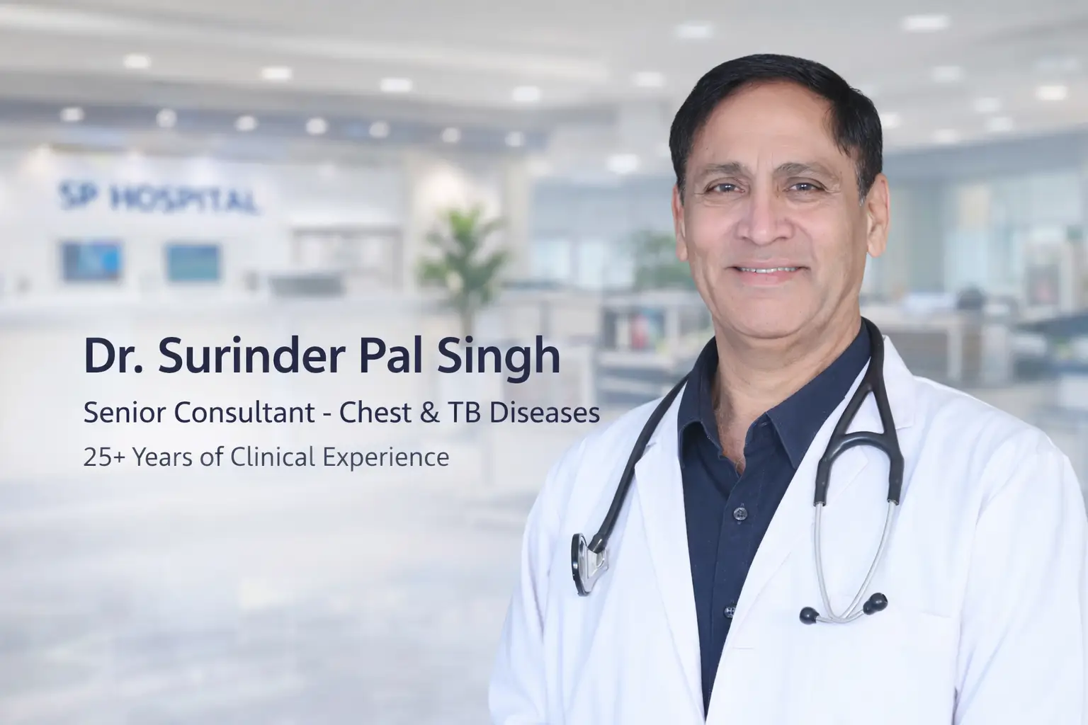 SP Chest and General Hospital is a dedicated centre for comprehensive chest, respiratory, and general medical care in Patiala. Led by Dr. Surinder Pal Singh, Senior Consultant, Ex Professor Chest & TB Hospital, with over 25 years of clinical experience, the hospital is committed to delivering ethical, accurate, and patient-focused treatment.